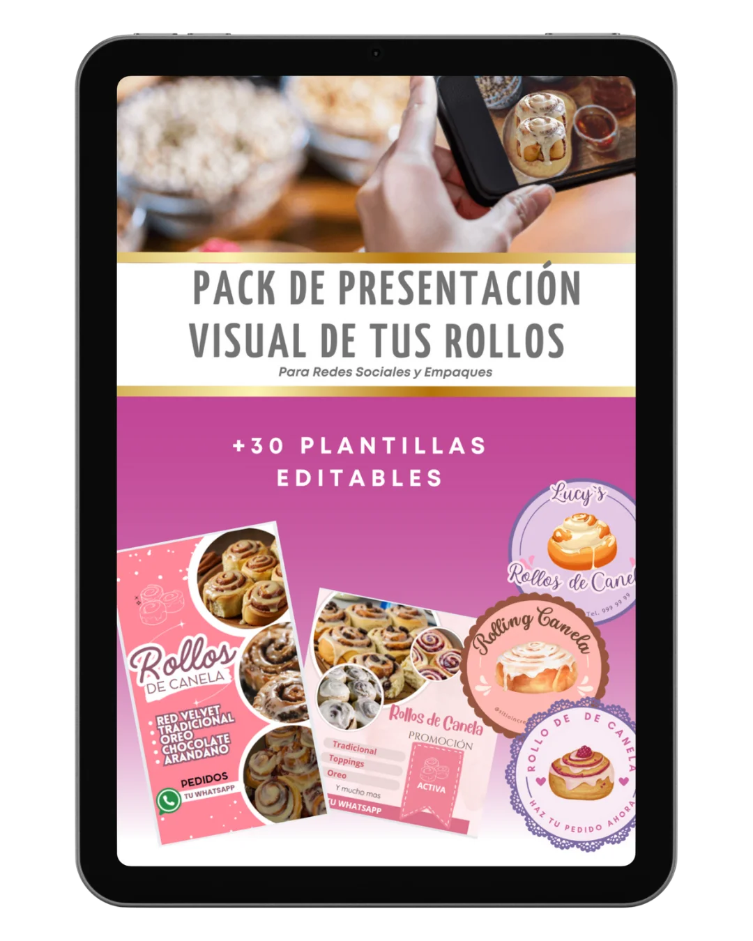 Obtendrás diseños listos y editables para personalizar y usar en Redes Sociales. Además de Etiquetas para identificar tu marca y des a conocer tus Rollos irresistibles.